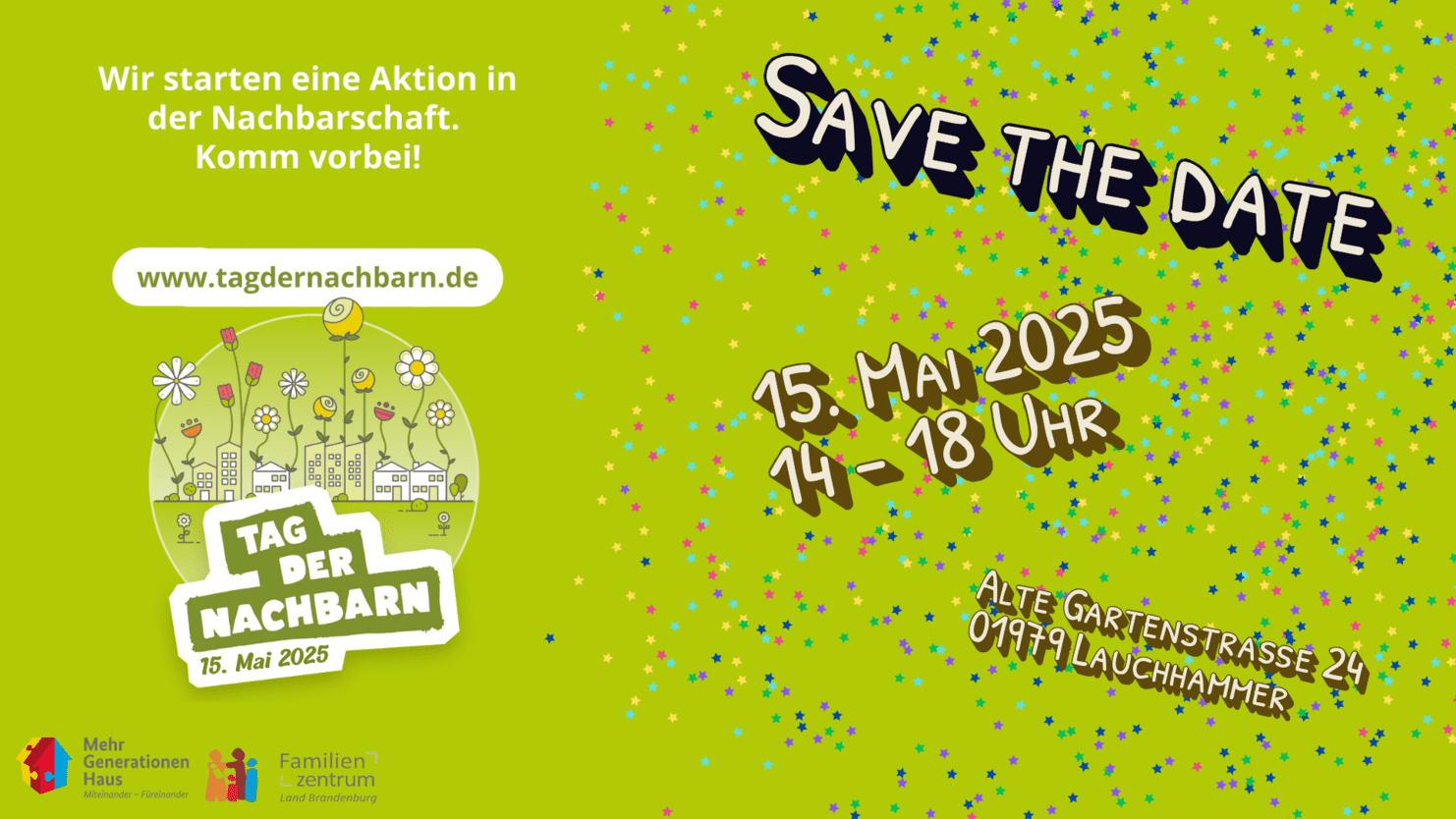 Wir laden Euch recht herzlich zu unserem diesjährigen Tag der Nachbarn am Donnerstag, den 15.05.2025 von 14 bis 18 Uhr ein.