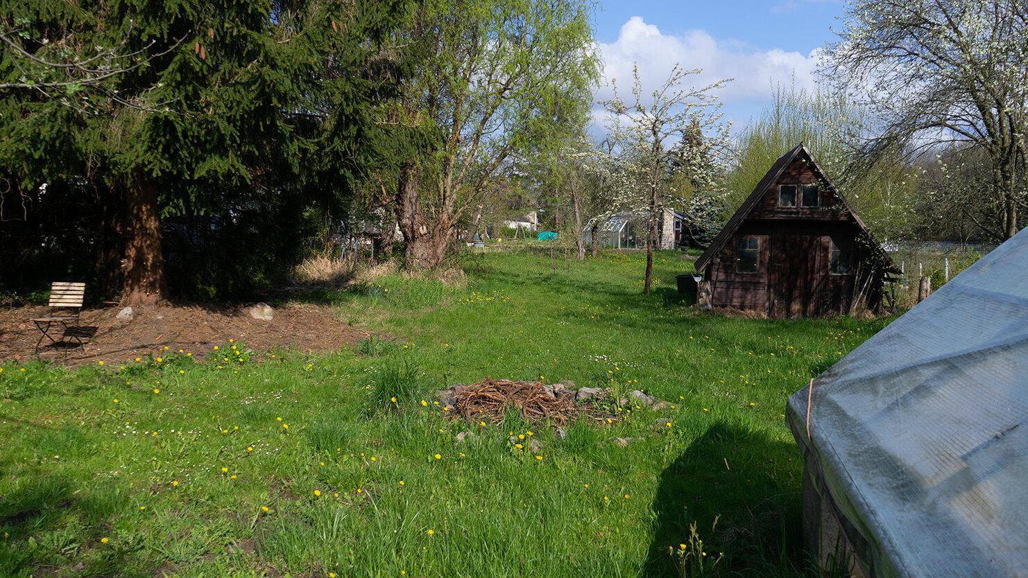 Auf der kleinen Zeltwiese vom Kochsatreff - Zugang über Radweg - bei Regen auf dem Hof