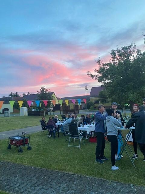 Wir treffen uns alle auf dem Dorfplatz und jeder bringt dazu eine selbstgemachte Köstlichkeit mit.