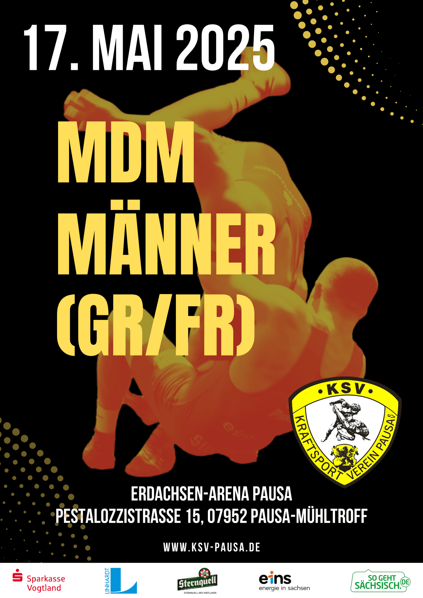 Am 17. Mai 2025 richtet unser Verein - KSV Pausa e.V. - die Mitteldeutschen Meisterschaften der Männer im Griech.-Röm. Stil & Freistil im Ringen aus – ein sportliches Großereignis direkt vor unserer Haustür!!