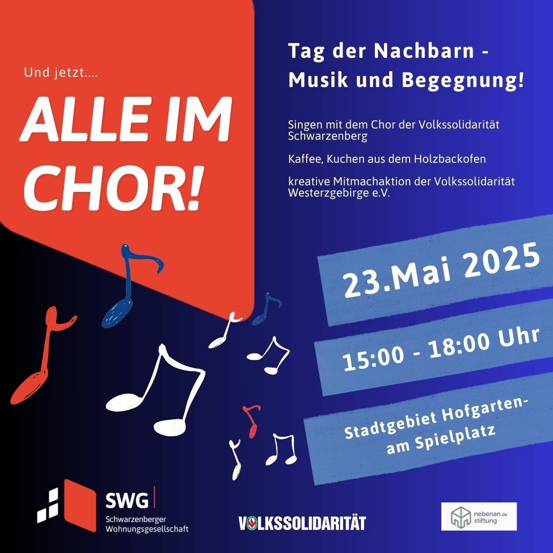 Zum Tag der Nachbarn wirds im Stadtgebiet Hofgarten richtig schön: Wir treffen uns zum gemeinsamen Singen mit dem Chor der Volkssolidarität, genießen leckeren Kuchen aus dem Holzbackofen der Bäckerei Stenker und werden kreativ bei einer Mitmachaktion der Volkssolidarität. Ob Jung oder Alt – kommt vorbei, bringt gute Laune mit und lasst uns zusammen eine schöne Zeit verbringen!