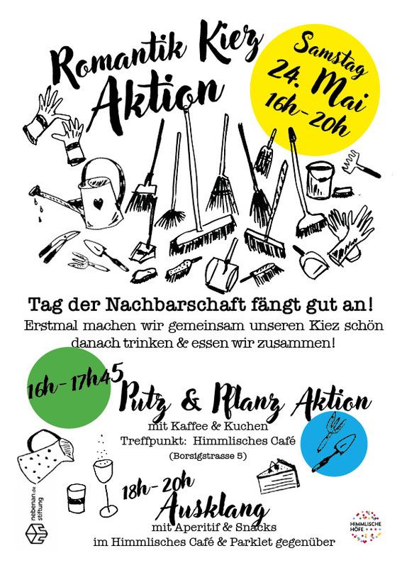Am Tag der Nachbarschaft, Samstag, den 24. Mai, putzen wir erstmal von 16 Uhr bis 18 Uhr gemeinsam und danach feiern wir zusammen.