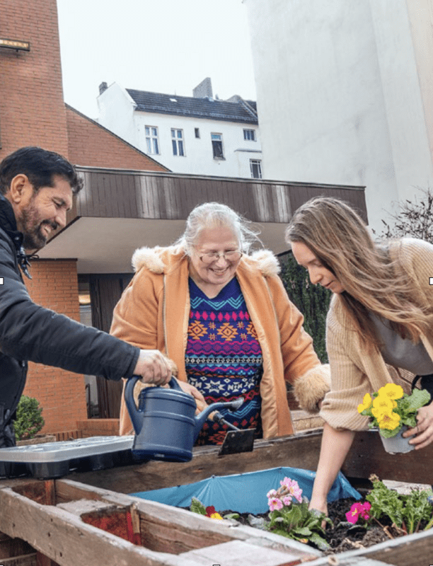Unser Urban Gardening-Angebot ist niedrigschwellig, inklusiv und fördert nachbarschaftliches Miteinander. Ob mit Vorerfahrung oder ohne – alle sind willkommen, sich einzubringen: beim Pflanzen, Gießen, Pflegen und Ernten, aber auch bei Gesprächen auf Augenhöhe und dem gemeinsamen Erleben von Natur mitten im Kiez.