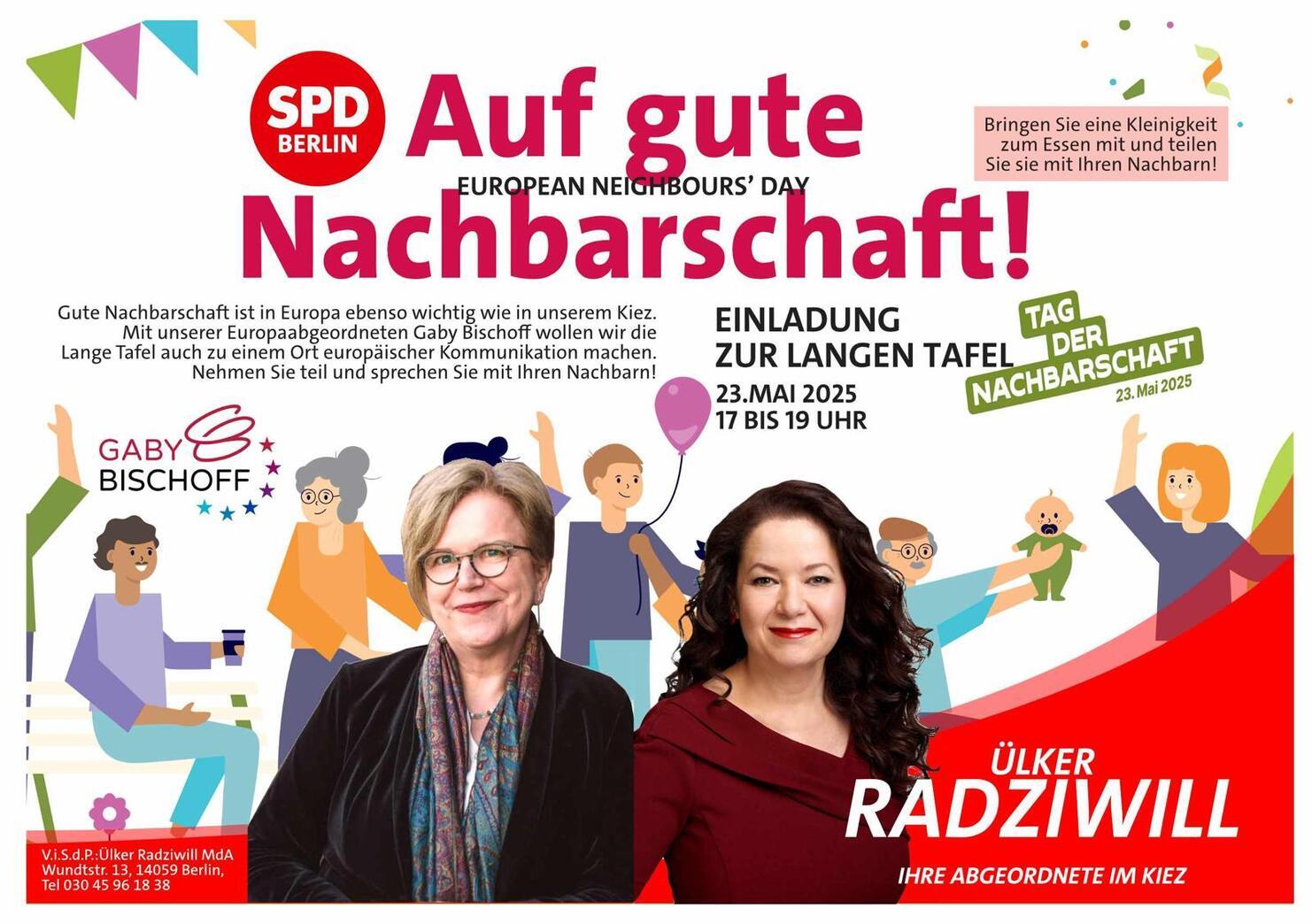Gute Nachbarschaft ist in Europa ebenso wíchtig wie in unserem Kiez. Mit unserer Europaabgeordneten Gaby Bischoff wollen wir die Lange Tafel auch zu einem Ort europäischer Kommunikation machen. Nehmen Sie teil und sprechen Sie mit Ihren Nachbarn!