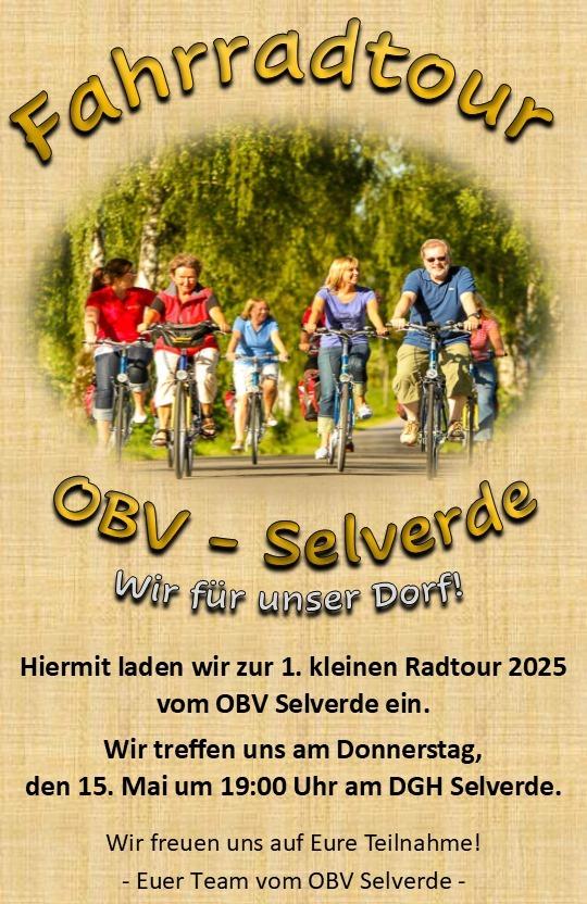 Wir, der Ortsbürgerverein Selverde e.V., brechen am 15. Mai 2025 zu unserer ersten Monatsradtour in diesem Jahr auf. Gemeinsam wollen wir unseren schönen Ort und die Gemeinde Uplengen mit dem Rad erkunden. Im Anschluss lassen wir bei leckeren Bratwürsten, kühlen Getränken und netten Gesprächen den Abend gemeinsam bei unserer Blockhütte ausklingen.