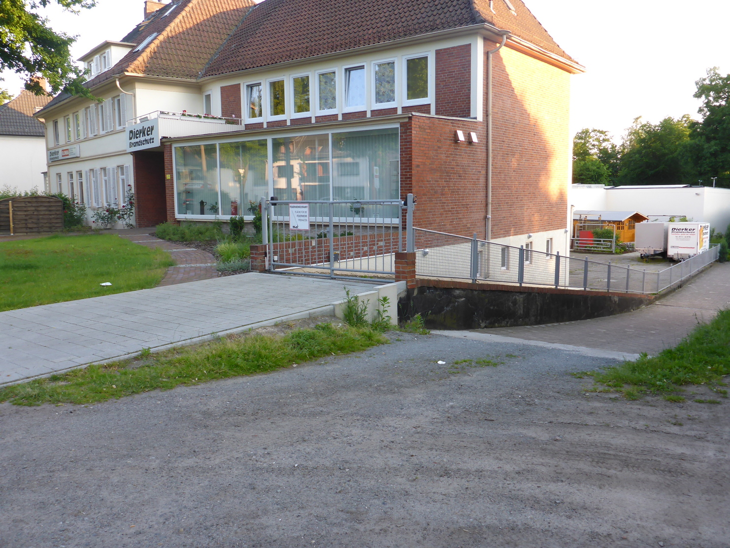 Rechts Seiteneinfahrt zum Parkplatz hinten