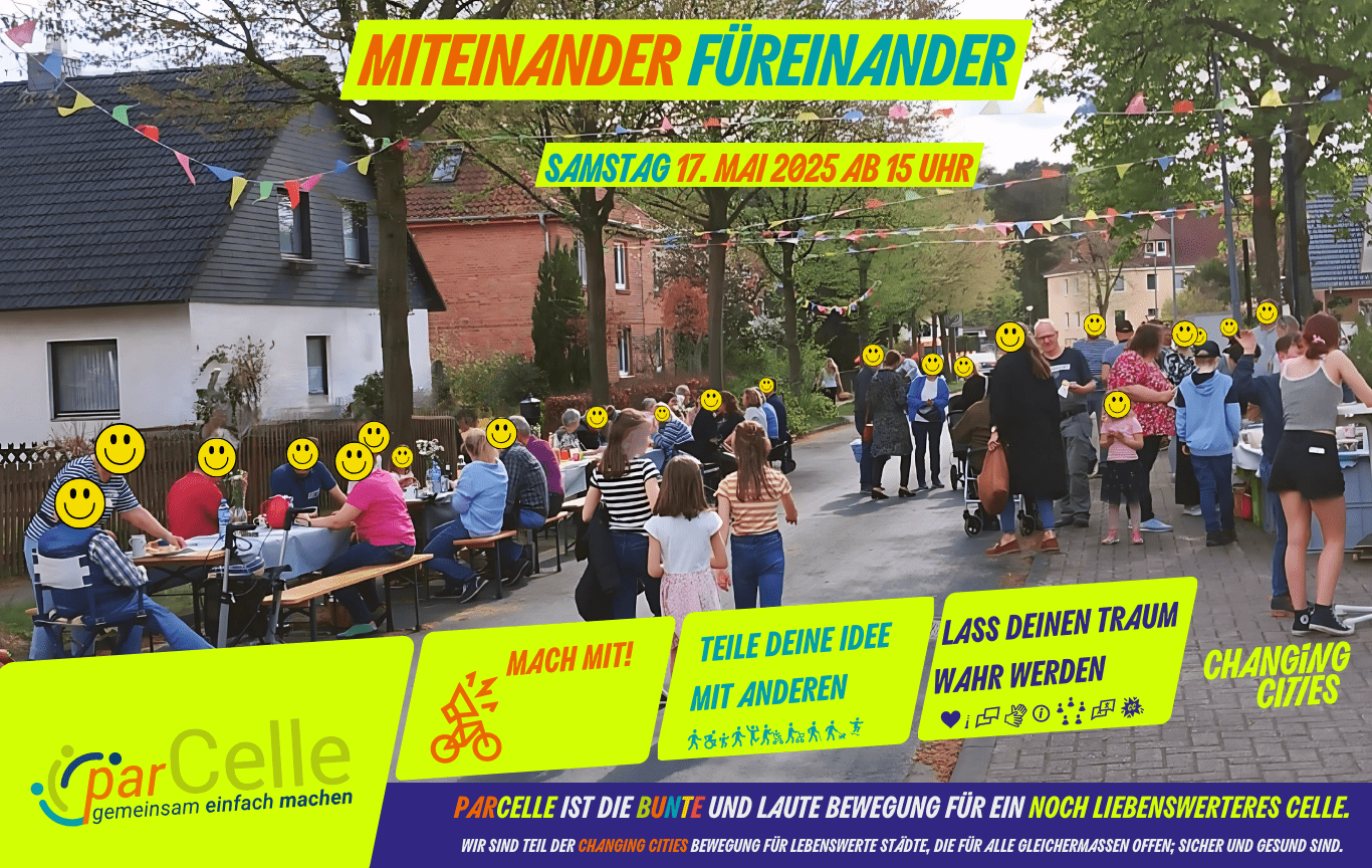 Ihr könnt Euch einbringen mit Ideen und Aktionen, die unser Miteinander stärken und uns neue Dinge ausprobieren lassen. Nistkästen könnten gebaut werden und unsere Bushaltestelle bekommt einen Frühjahrsputz. Ihr macht den gesperrten Berkefeldweg zum Straßenkunstwerk mit Straßenkreide und nutzt ihn als Teststrecke mit Roller und Rad. Müllsammeleimer und Zangen liegen für Euch bereit. Wir können uns austauschen über das Teilen von Autos, Fahrrädern oder auch Werkzeugen. Wir können Dinge ausprobieren und einander vorführen. Wir teilen mitgebrachte Leckereien, und es stehen Grills bereit für Eure Nutzung.