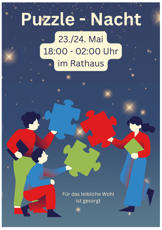 Das DRK KV Fulda e.V., Projekt LAeufT veranstaltet am 23./24. Mai eine Puzzle-Nacht im Rathaus der Gemeinde Hilders.