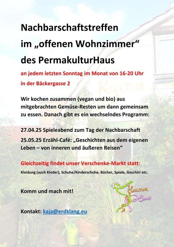 Im PermakulturHaus (großes Plakat an der Hauswand)