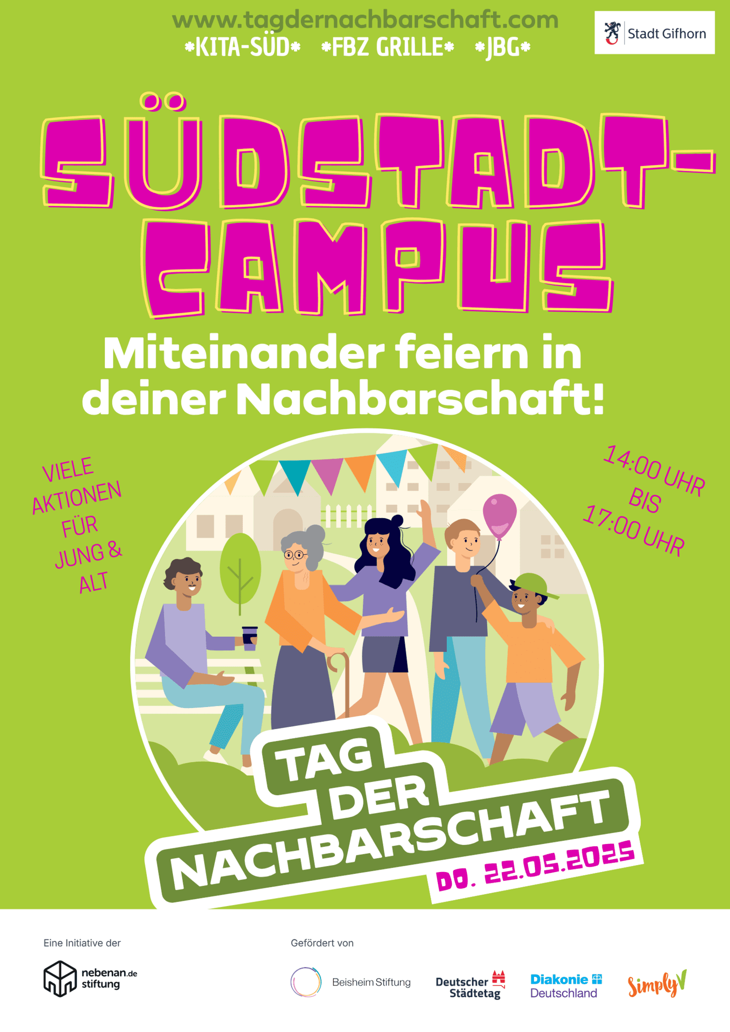 Familien, Kinder, Senioren, verschiedene Nationen - unsere Nachbarschaft ist bunt, aber kennt eigentlich noch jemand seine Nachbarn? Das kann sich ändern. Denn am Donnerstag, 22. Mai feiert der Südstadt-Campus in der Zeit von 14 bis 17 Uhr den Tag der Nachbarn.