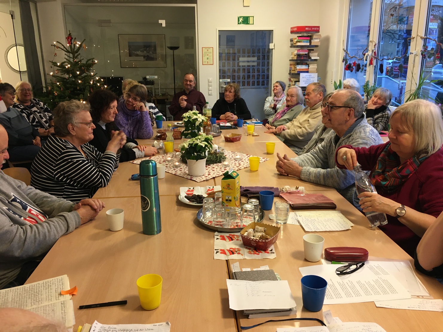 Die Schreibegruppe des Nachbarschaftstreffs mit ca. 12 Frauen an stellt ihr zweites selbst erstelltes Buch mit dem Titel "Wenn "alte Schachteln" erzählen" vor.
