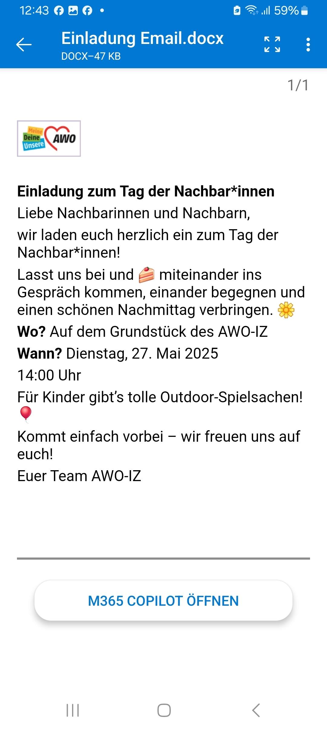 Mit dem Nachbarschaftstag wollen wir genau dieses Miteinander feiern. Gerade Menschen, die allein leben oder neu in der Nachbarschaft sind, möchten wir die Gelegenheit geben, Anschluss zu finden, sich willkommen zu fühlen und Teil einer lebendigen Gemeinschaft zu sein.