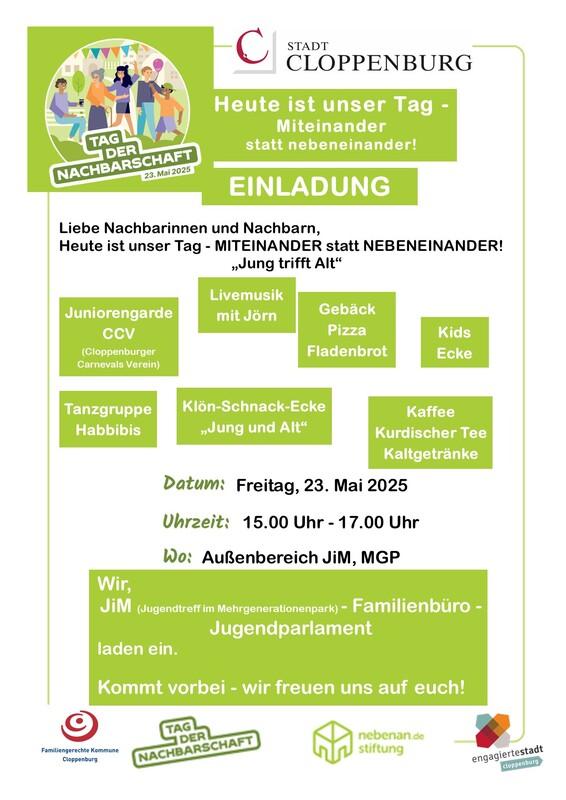 Wir, JiM, Familienbüro und Jugendparlament laden euch ganz herzlich am 23.05.2025, von 15.00 Uhr - 17.00 Uhr, zu einem bunten Nachmittag im MGP ein.