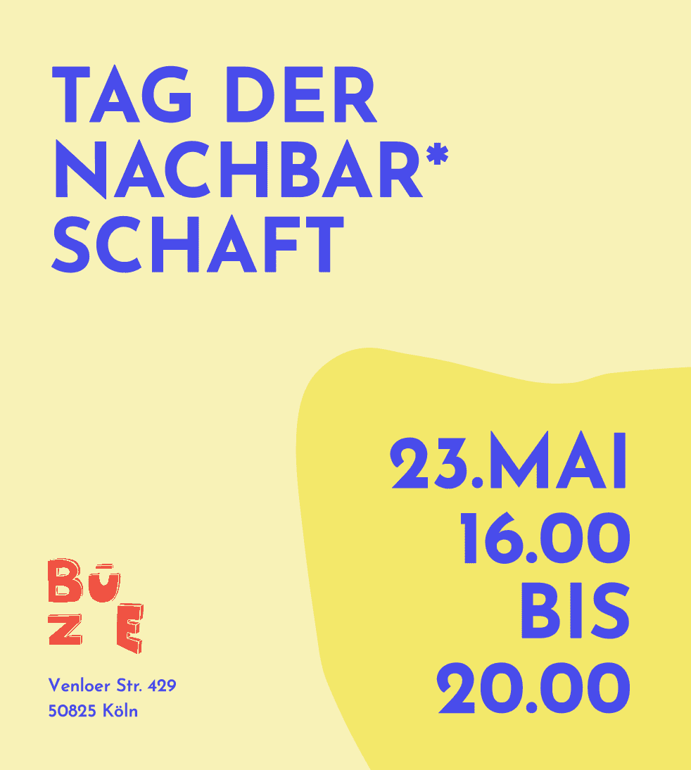 Ab 16 Uhr werden dafür verschiedene Mitmach-Aktionen und Workshops von uns als BüzE und engagierten Nachbar*innen organisiert. Auch für ein leckeres Essensangebot mit Gegrilltem, Kuchen, arabischen Kaffee und Tee wird gesorgt.