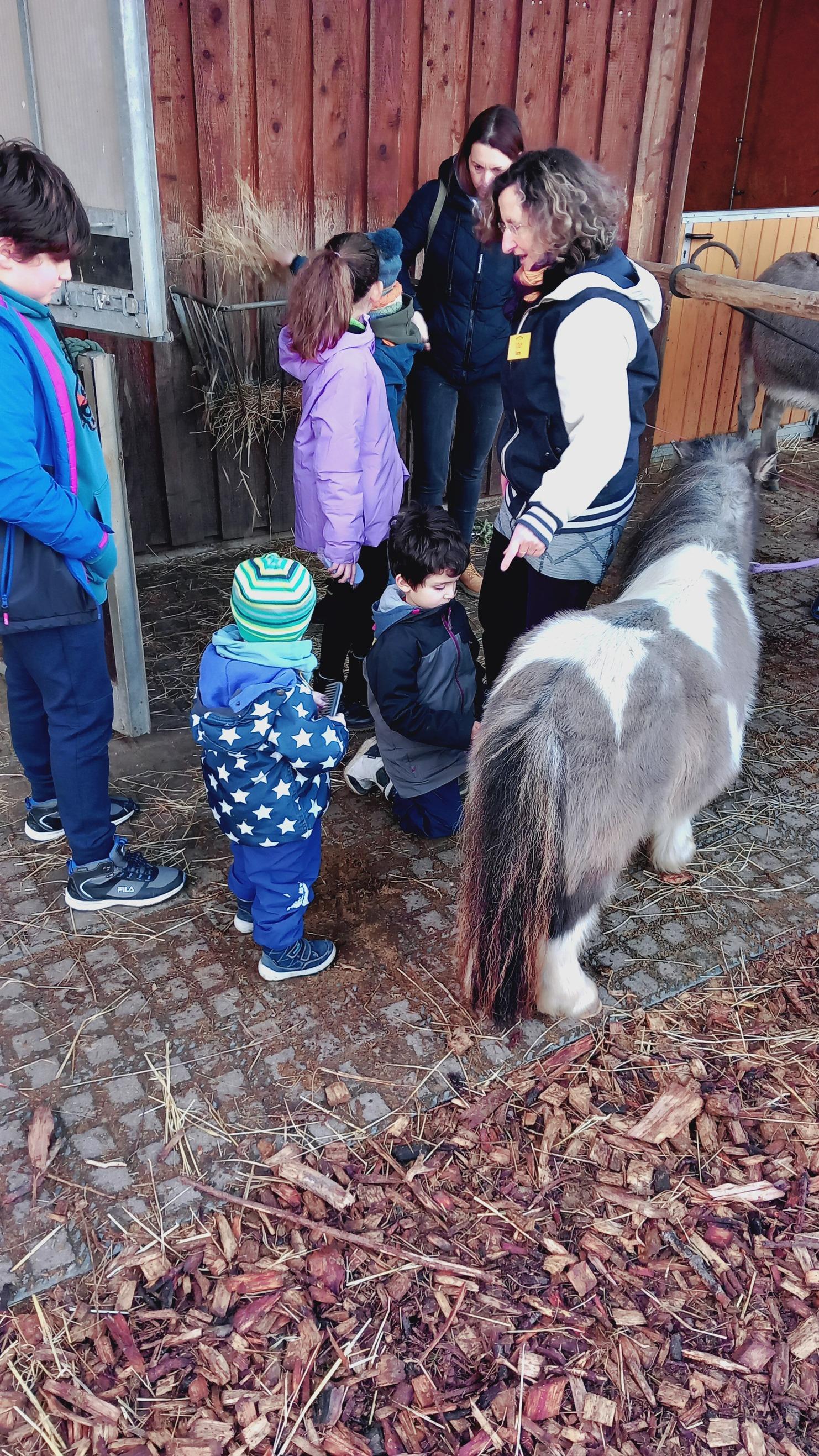 Wir bieten für die Kinder neben unserem großen, barrierefreien Spielplatz auch ein kleines Tierprogramm an, bei dem sie - unter unserer Anleitung- in die Esel- und Ponyställe hineingehen dürfen und sich um die Tiere kümmern dürfen.
