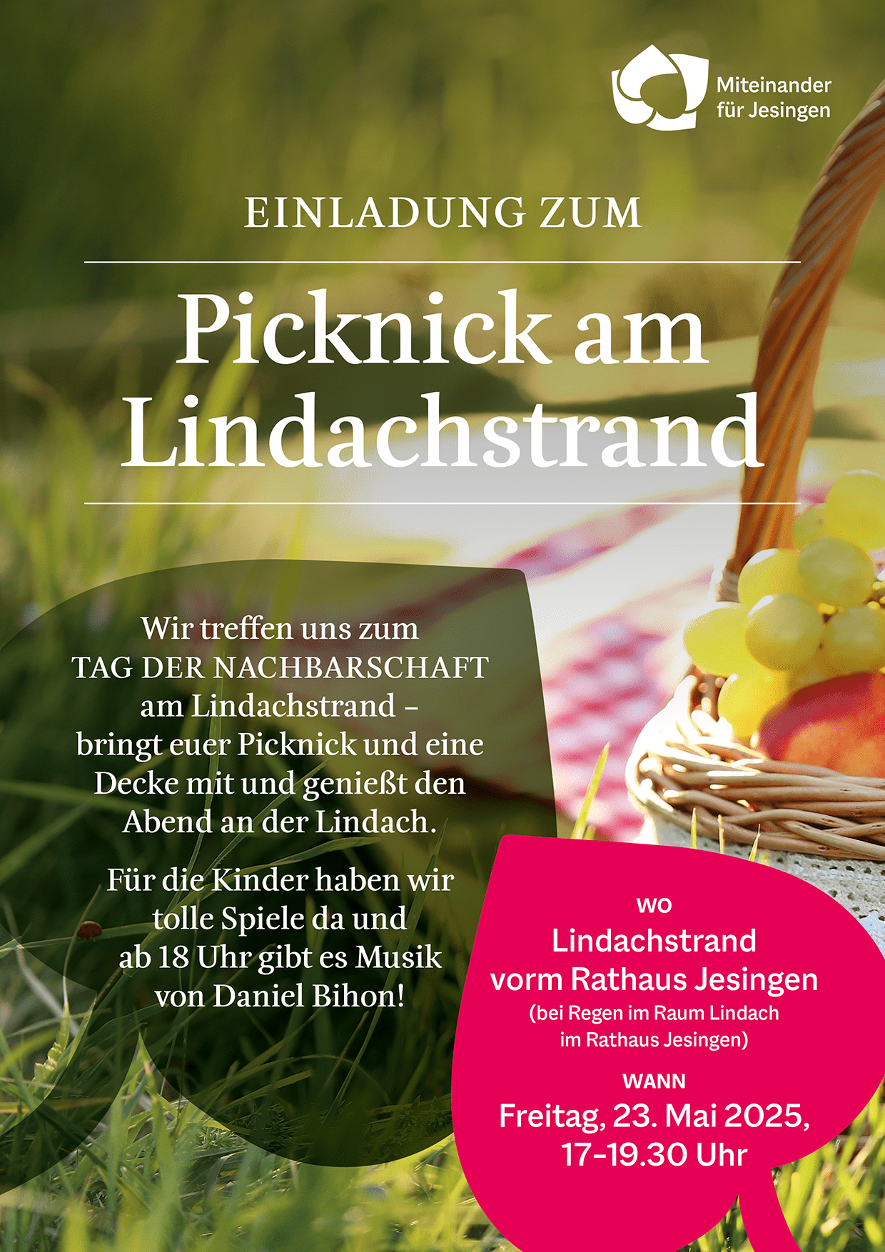 Am Lindachstrand beim Rathaus Jesingen lädt das Nachbarschaftsnetzwerk "Miteinander für Jesingen" zum gemeinsamen Picknick zum Tag des Nachbarn ein.