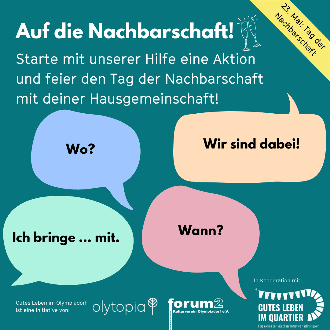 Am Freitag, den 23. Mai, ist Tag der Nachbarschaft. Ist das nicht eine wunderbare Gelegenheit, um als Hausgemeinschaft zusammenzukommen, sich (besser) kennenzulernen, gutes Essen und Getränke zu teilen? 🥂