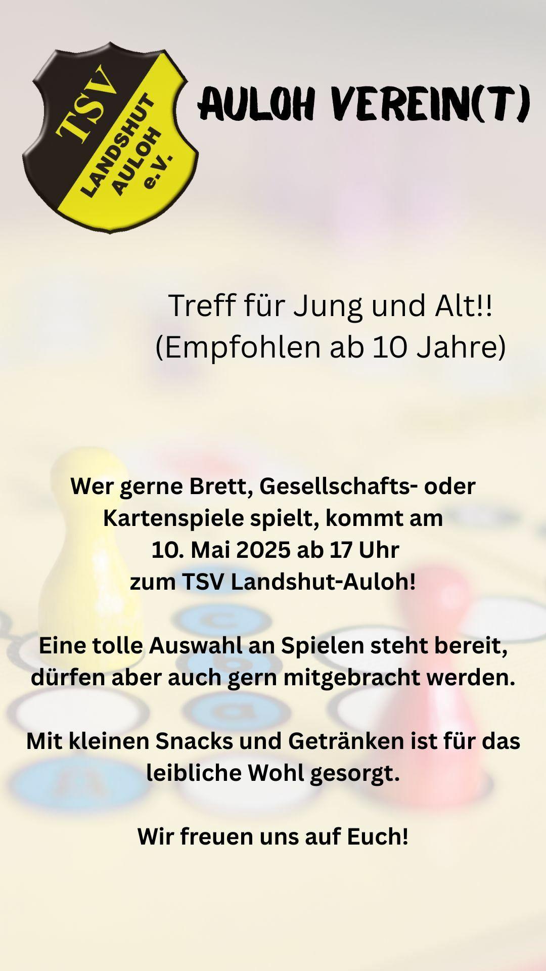 Unser Sportverein ist in dem Stadtteil Auloh in Landshut. Dieser Stadtteil hat in den letzten zwei Jahren einen sehr großen Familienzuzug. Wir wollen alte und junge Menschen und Einwohner zusammenbringen und veranstalten eine Spielenachmittag (Gesellschaftsspiele, Kartenspiele, Brettspiele). Ziel ist es insbesondere, Jugendliche von Handys und Spielkonsolen wegzubekommen und eine Begnungsstätte auch für ältere Menschen zu schaffen. Auch das Erlernen von tradtionellen Spielen wie Schach, Watten, Schafkopfen gehört dazu. Wenn das Konzept gut angenommen wird, soll dieser Treff regelmäßig einmal monatlich stattfinden. Von der Förderung könnten wir Spiele einkaufen. Der Sportverein hat einen Vereinssaal, der genügend Platz bietet. Für die Verpflegung sorgt die dazugehörige Sportgasstätte.