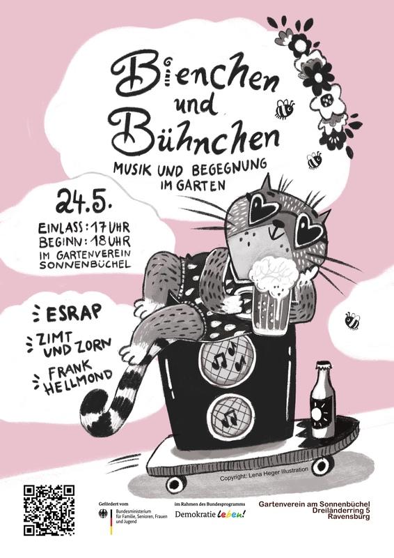 Kleines Umsonst & Draussen Musikfestival bei uns in der Kleingartenanlage Ravensburg-Sonnenbüchel. Kommt gerne vorbei, der Eintritt ist frei. Es werden Getränke verkauft und Bashar kommt mit seinem Falafelstand.