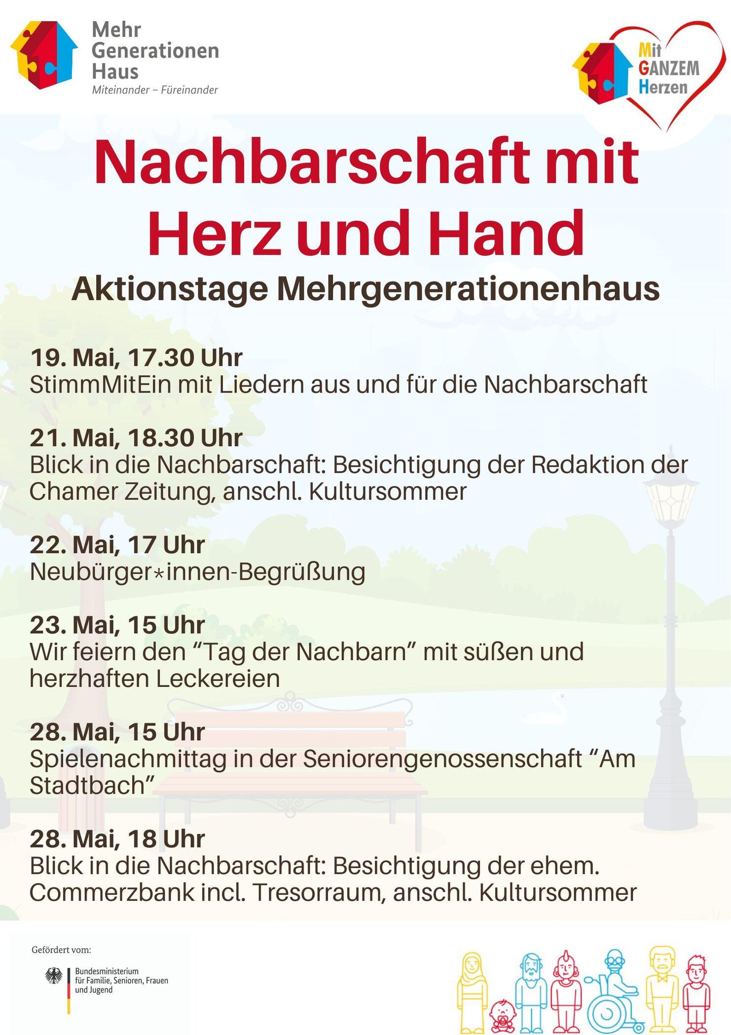 Wir laden Euch ein zum "Tag der Nachbarn" ins Mehrgenerationenhaus - zum Ratschen, Spielen, Mitmachen - zu süßen und herzhaften Leckereien!