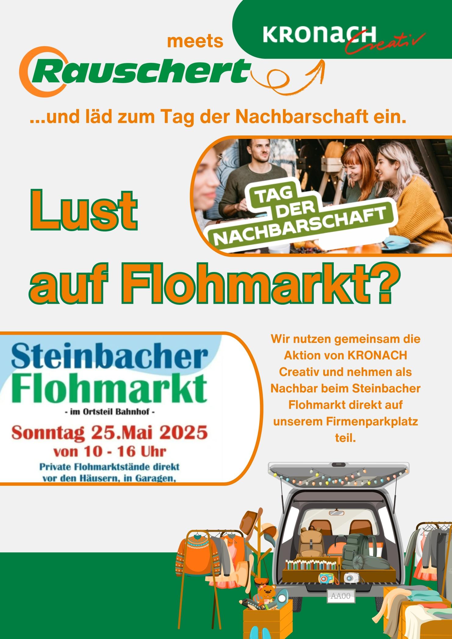 Wir die Firma Paul Rauschert Steinbach GmbH, nutzen das großartige Event der Gemeinde und schließen uns mit unseren Mitarbeitern dem Flohmarkt an. Insgesamt werden im Ortsteil Bahnhof ca 40 Flohmarkt Standorte zu finden sein.